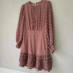 Stylish mauve pink dress with unique textured details. Ideal for elegant events.