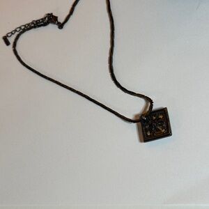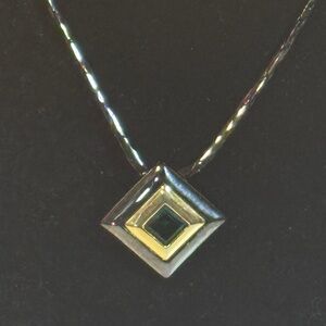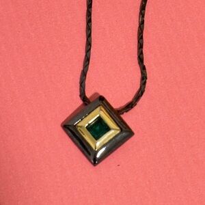 YSL Black Silver Chain with a Gemstone pendant In green color in a black pendant Chic necklace with a bold geometric pendant. Features black and gold tones with. Green gemstone in the middle . Perfect for elevating any look. In good condition! Perfect for gifts or personal use..