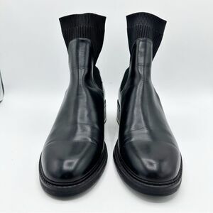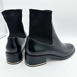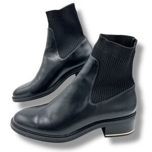 Zara Metal Trim Chunky Heel Black Chelsea Ankle Boots Sz 41 10.5