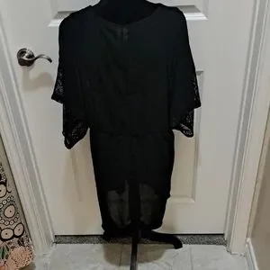 Chic black swim cover up with sheer lace details. Flowy and stylish! Size XL