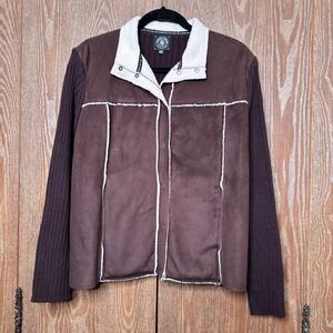 Carolyn Taylor Cotton Blend Sweater Womens Brown Faux Suede Knit Combo Jacket XL