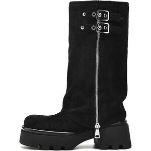 【Fold Over Boots with Side Zipper】 Features a side zipper and straight-cut design for easy wear and removal, really cool.