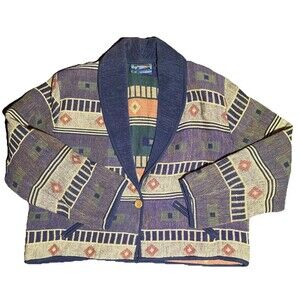 The Women's Shavers Lake Cropped Knit Sweater in size Large is a stylish and versatile piece for your wardrobe. Made by the brand Shavers Lake, this multicolor sweater features a cropped style and is crafted from cozy knit fabric. Perfect for layering over your favorite outfit, this cardigan is a must-have for any fashion-forward woman looking to add a touch of sophistication to her look.