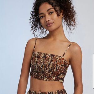 The Cantabria Floral Crop Top is designed for sun seekers with an affinity for earthy floral tones and effortless style. Featuring a detailed pleated textured front and elastic back to easily slip this number on with your favorite pair of jeans.