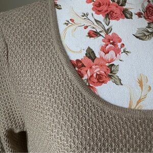 Sparkle and shine in this gold knit sweater dress with ribbing and lurex yarn for dimension, interest and flattering fit. Looks great belted - for example see second photo (belt sold and not included in listing.)