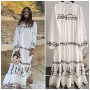 Zara Cotton Embroidered Dress New