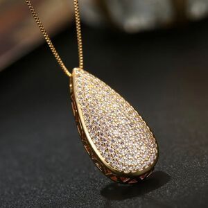 18K Gold Plated Diamond Teardrop Pendant Necklace