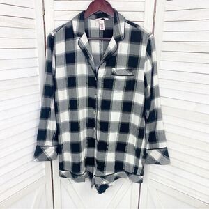 Victoria’s Secret Plaid Flannel Shorts Sleep Romper Black White Small