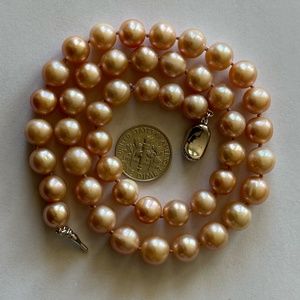 I made this strand using cultured pearls that are NATURAL in color, (no treatment, dye, enhancement, etc.), and the strand measures approximately 18 inches long.