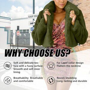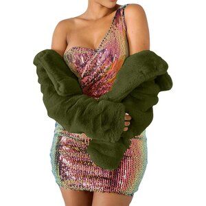 Women's Winter Faux Fur Long Sleeve Jacket Shaggy Open Front Cardigan Army Green
