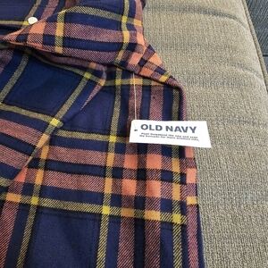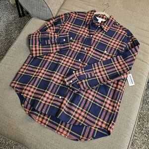 Old Navy The Boyfriend Blue Pink Plaid Dark Star Casual Button Shirt Medium
