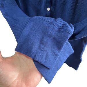 Chic navy button down henley shirt. Long sleeves with a flattering fit. Ideal for casual or dressy looks. Size small, in good preowned condition.