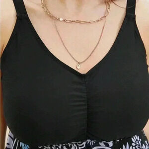 Full coverage, black floral, adjustable straps, removable padding, very stretchable