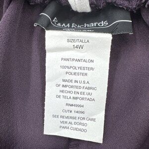 Vintage R&M Richards Womens Jacket Necklace Pants Set 14W Purple Pull On Floral