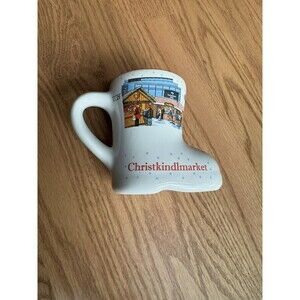 Christkindlmarket WRIGLEYVILLE Chicago 2019 Mug Boot. This ceramic cup is from the market directly outside Wrigley Field, where the Chicago Cubs play, and is highly sought after by those collecting these special mugs only available at this market. It is a must-have for Christmas collectors, Chicago memorabilia and German Gluhwein lovers.