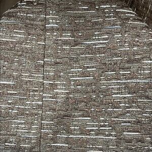 Michael Kors Shimmer Glam Metallic Brown Pencil Mini Skirt - size 8, This brown mini skirt by Michael Kors (size 8) showcases a refined pencil silhouette, ideal for both professional and casual occasions. Crafted from a textured fabric, it offers a sophisticated look with a smooth waistband for a comfortable fit. The skirt is a mix of metallic golds, cream, tan and browns, and fully lined in tan fabric. There is a hidden zipper with a top hook closure. The mini length adds a contemporary touch to your wardrobe at 18” long and 15.5” wide. Please see pictures for condition and details. Excellent condition with no pulls or stains. Only worn a few times. There is a mark on the label to the left of the brand name. Please see pictures. Thank you for looking and make me an offer.