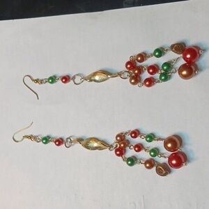 These are Handmade by an artist. They are very long and dangly with green copper and gold beads and one little Stone. they are for pierced ears and they are 5".
