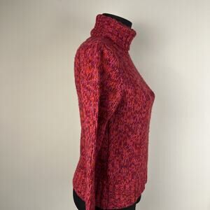 DKNY Turtleneck Sweater 100% Lambswool Medium Red Y2K Chunky Knit