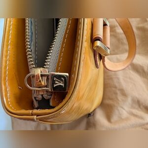 Authentic Louis Vuitton Houston Embossed Monogram Vernis Leather tote bag. This happy tote bag screams "sunshine". Overall, it's in great condition with shiny hardware, clean Vachetta, and a sparkling clean interior. There are a couple of small call-outs so please see the pictures. Zippers are zippy. Comes with an LV-branded dust bag and a COA. 8/10 LM0080