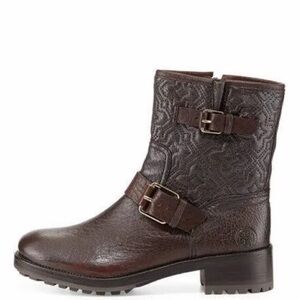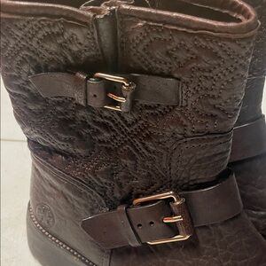 Tory Burch Dark Brown Leather Moto Boots