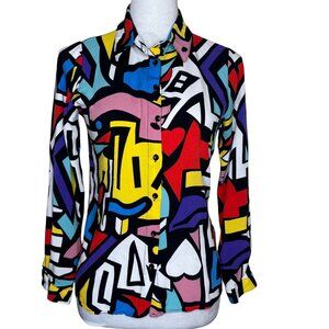 Big Dart Vintage Op Art Dopamine Colorblock Button Collared Blouse Shirt Top 8