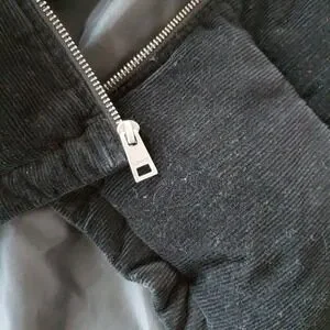 The Levi's Puffer Corduroy Jacket in size Large is a stylish and versatile piece perfect for casual occasions during the winter and fall seasons. Made from cotton corduroy with a polyester lining and insulation, this vintage-inspired jacket features a zip closure, collared neckline, and long sleeves. The classic black color and solid pattern add a touch of preppy flair to the overall look, while the cinched waist and regular fit offer a comfortable and flattering silhouette. Ideal for those looking for a blend of city-inspired style and 90s nostalgia, this Levi's jacket is a timeless wardrobe essential.