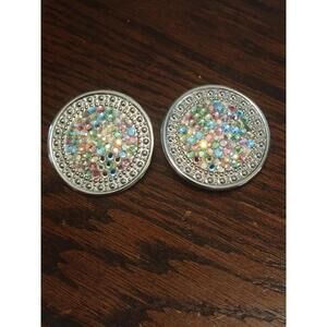 Vintage Richard Kerr Earrings multicolor Huge Stud Signed Crystal Disc Clip On