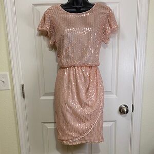 Grace Karin Light Pink Sequin Wrap Cocktail Dress Medium