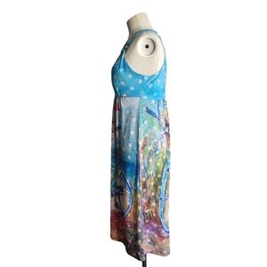 Leoma Lovegrove "Beach & Ride" Art to Wear Sleeveless midi dress.