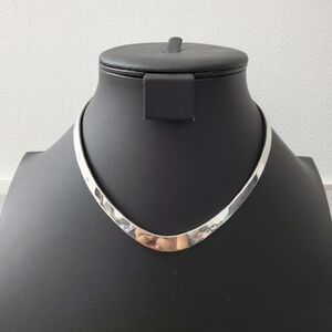 Sterling Silver 925 Solid Sterling Heavy V Neck Cuff Necklace