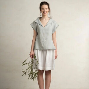 LHI Lithuanian 100% Linen Cap Sleeve Top Blouse in Dove Gray Size XS