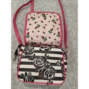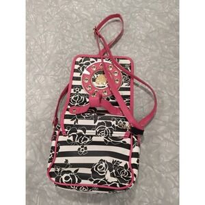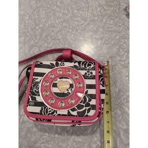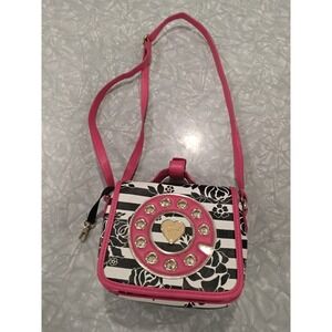 Betsey Johnson Phone Dial Crossbody Bag Black White Floral Pink Heart Accent