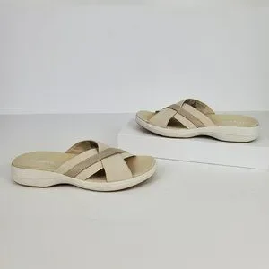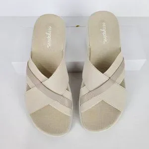 Easy Spirit Squint Beige Tan Fabric Leather Upper Slip On Sandal Size 6 1/2M
