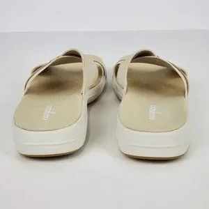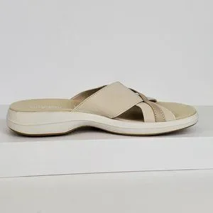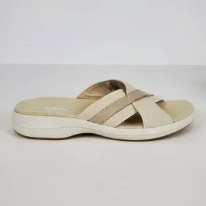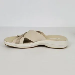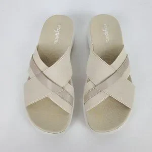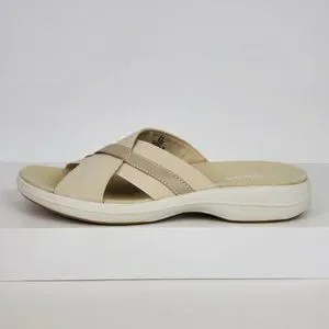 Easy Spirit Squint Beige Tan Fabric Leather Upper Slip On Sandal