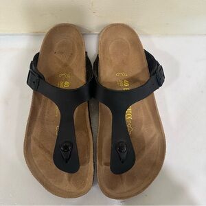 Birkenstock Gizeh Thong Toe Black Leather Sandals Size EU 40 US 9 Regular