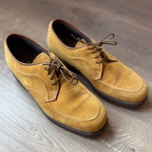 Size 7 is men shoe size. Chic yellow suede Derbys by Hush Puppies. Perfect blend of style and comfort.