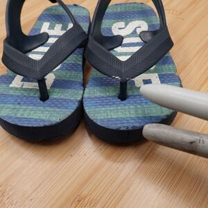 Flip Flops Kids Toddler 5-6 Sandals Blue Green Stripe Surf Dude Flaws