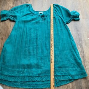 Natural Life Teal Cotton Gauze Tie Neck Dress Size M, Medium, 100% Cotton, Boho