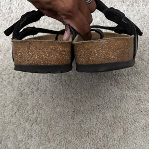 Classic Birkenstock sandals. Black straps with adjustable buckles. Comfortable footbed.