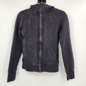 Lululemon Scuba Full Zip Hoodie Jacket Womens Size 4 Black Cotton Fleece *faded*