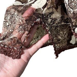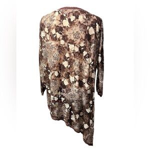 Beautiful ESHA Designs Floral Brown and Cream Lacy Asymmetric Top, Plus size
