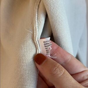 Chic cream cardigan sweater with open front. Soft fabric and elegant drape. Ideal for versatile styling.