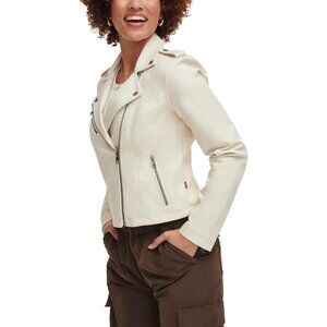 Women's The Classic Faux Leather Moto Jacket Font Full Zipper White Oyster