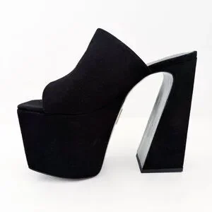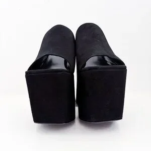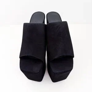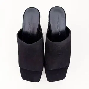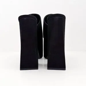 Harlo Platform Mule in Black Suede with Signature B Logo by Brandon Blackwood. New in box. Incudes box and dustbags.