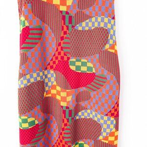 This PUCCI ankle-length maxi dress features an all-over graphic print, crew neck, racer back and side slits. Sleeveless maxi dress boasts a body-con fit and checkered jacquard construction. Preowned condition. Light signs of wear and use throughout. 2 small thread pulls on front and 1 small thread pull on the back.