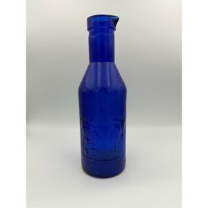 This 11" tall milk bottle is a charming addition to any collection. The cobalt blue color and embossed details make it a decorative piece that is sure to catch the eye. The bottle is designed to protect milk, ensuring that it stays fresh for longer.