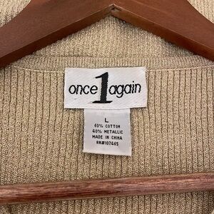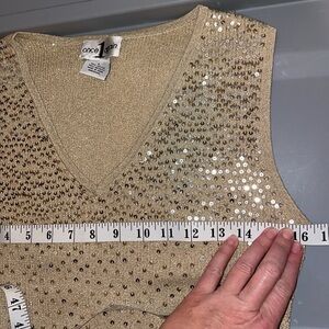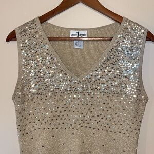 Once again women’s sweater top Large sleeveless sequin vneck knit gold silver