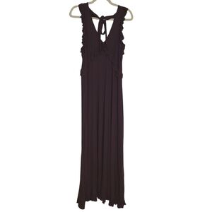 Women's deep v-neck maxi length ruffles sleeveless dress by Anthropologie, size XL. Dress has a toe on the back of the neck to adjust fit.