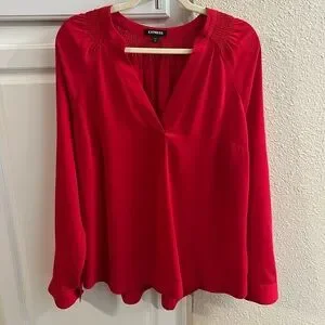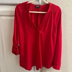 Express V Neck Blouse Vibrant Red Women's Blouse