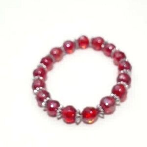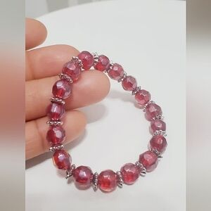4/$20 Red Glass Bead Stretchy Bracelet With Crystal Spacer Beads. 🌴